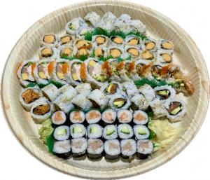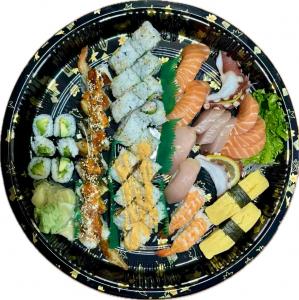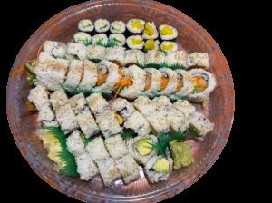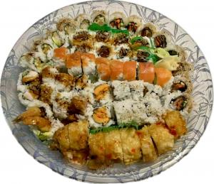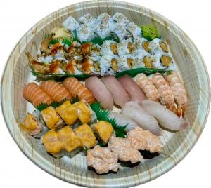 (3pcs of each salmon, tuna, ebi, chopped scallop & tai sushi. california roll, tokyo roll, dynamite roll & yam roll)