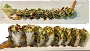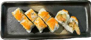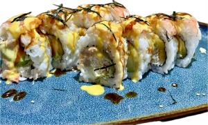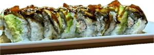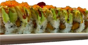 (eel, cucumber, avocado, prawn tempura & tobiko w/unagi sauce)
