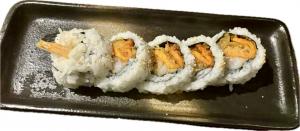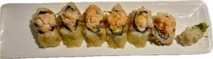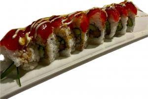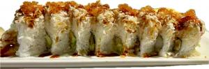 (crab meat, prawn tempura, tobiko, cucumber, tempura crunch with mayo & unagi sauce)