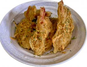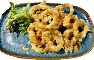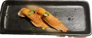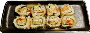 (Salmon, tempura prawn, cream cheese, cucumber and spicy mayo. flame seared)