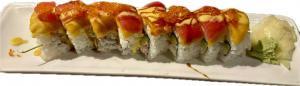 (prawn tempura, tuna, avocado, salmon & spicy sweet & sour sauce. w/tempura crunch)