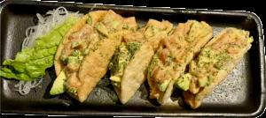 (Marinated albacore, salmon, Avocado, Spicy mayo, Sesame Seeds, Wonton Shells)