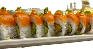 (salmon, cream cheese & mango wrapped with avocado and tobiko. served with mayo & mango sauce)