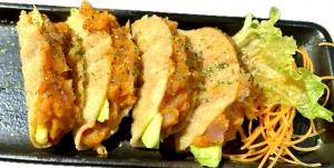 (chicken, avocado, yam tempura w/mayo, spicy sweet & sour sauce)