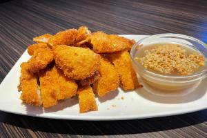 1. 5 pcs of Egg Rolls 2. Breaded Almond Chicken 3. Chicken Chow Mein 4. Sweet & Sour Pork (boneless) 5. Chicken Fried Rice 6. Deep Fried Prawns 7. Beef Chop Suey