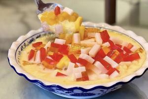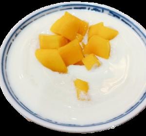 芒果双皮奶是一种将新鲜芒果丁铺在奶香浓郁、口感嫩滑的顺德传统双皮奶(利用牛奶和蛋白蒸制)上的冷藏甜品。制作关键是先将牛奶加热结出奶皮,再混入蛋白蒸制,最后在表面加入芒果丁,具有浓郁奶香与果香