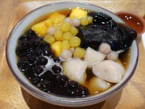 Grass Jelly with Taro Mochi + Earl Grey Jelly + Sago